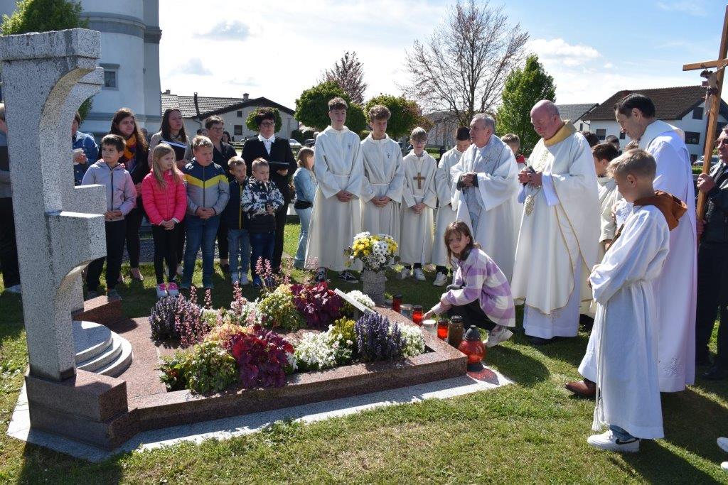 Med molitvijo rožnega venca so se vsi zbrani podali na bližnje pokopališče in ob grobu Božjega služabnika Alojzija Kozarja zmolili za njegovo beatifikacijo ter s pesmijo izpovedali, da smo v nebesih doma.
