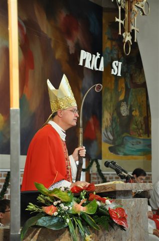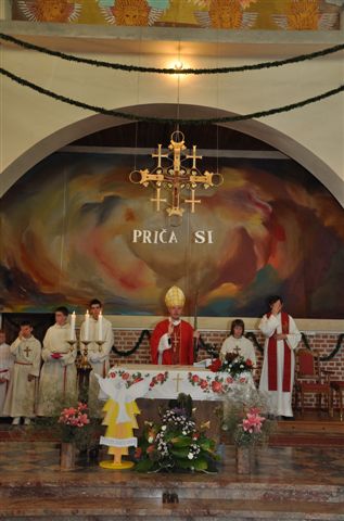 Pred blagoslovom je škof msgr. dr. Marjan Turnšek spomnil na viztacijo, na srečanje z birmanci, ki je bilo prejšnji torek in se zahvalil vsem, ki ohranjajo župnijo v dobri kondiciji, ki sodelujejo v življenju župnije.