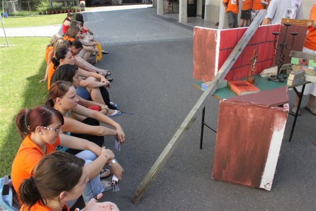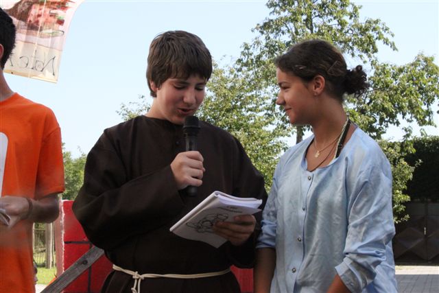 Z molitvijo in duhovno pripravo so animatorji začeli tudi ta dan. Po dvigu zastave in odpeti himni Nate računam, se je nadaljeval običajni program. V prizoru so animatorji prikazali sv. Frančiška, ki je slišal Jezusov glas: "Popravi mojo Cerkev." Frančišek je začel obnvaljati napol porušeno cerkev sv. Damijana, pozneje pa je spoznal, da Jezus želi, naj naredi kaj več za skupnost kristjanov, za Cerkev. Frančišek se je odločil, da izpolni Jezusovo naročilo. Prav tako se je Klara odločila za služenje Bogu.