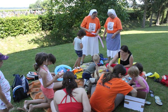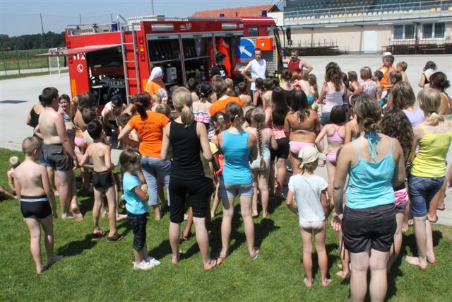 Ker je bil dan zelo vroč, so se zelo prilegle vodne igre, ki so jih pripravili animatorji. Hladno prho pa so jim po predstavitvi svojege dela omogočili tudi odranski gasilci. Tako se je četrti oratorijanski dan končal s hvaležnostjo vsem, ki so obogatili ta dan: sestram, animatorjem, ravnateljici in gasilcem.