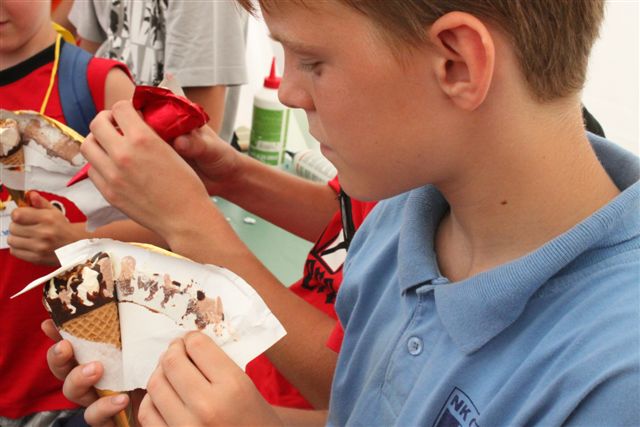 Otroci so se zelo razveselili, ko jih je obiskala ravnateljica Osnovne šole gospa Marija Smolko. Veseli so bili tudi hladnih sladkarij, ki jih je prinesla.