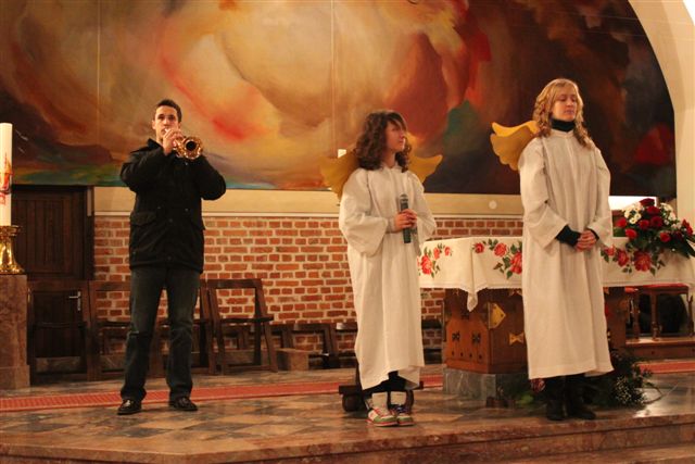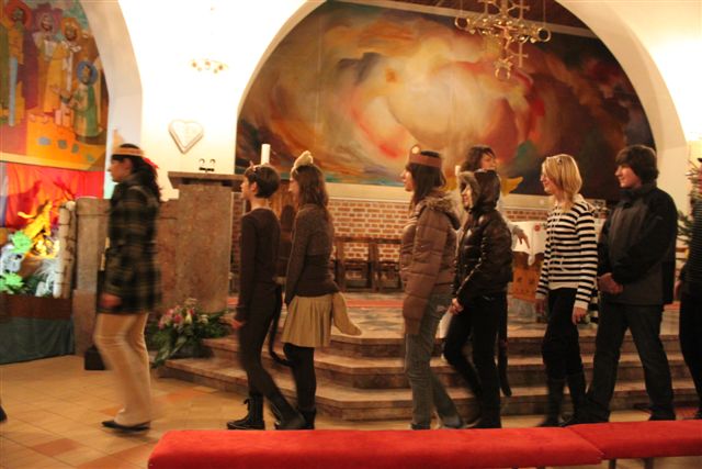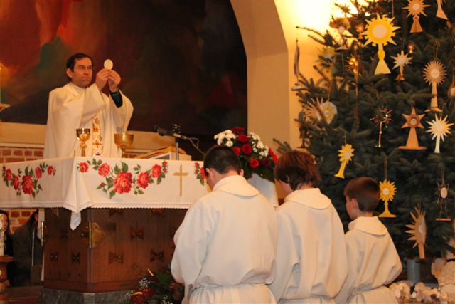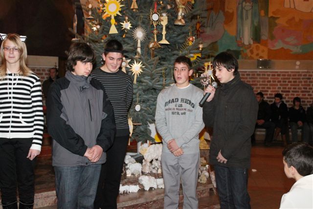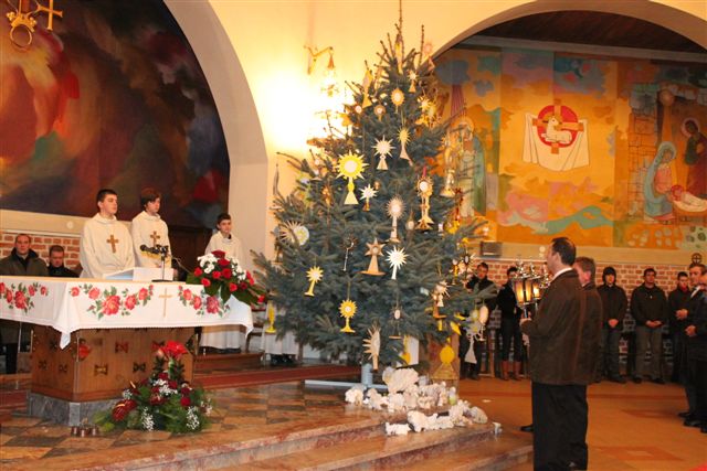 Po odigranem prizoru je bila slovesna polnočna sv. maša, pri kateri je s petjem sodeloval zbor Neuničljivo upanje. Po maši so verniki vzeli gorečo svečo, betlehemsko luč miru in jo ponesli na sovje domove, da bi vabila k miru, dobroti, k Bogu.
