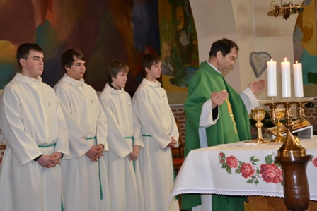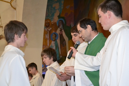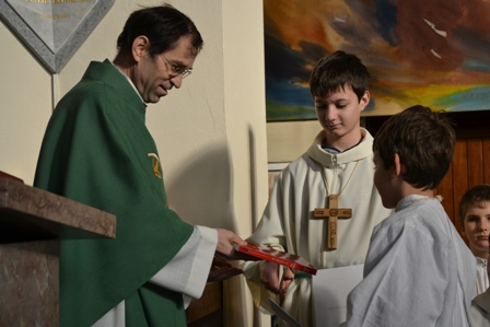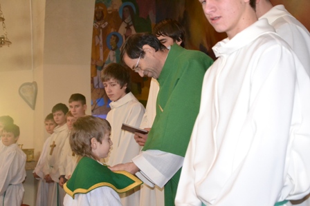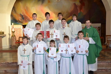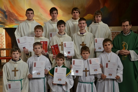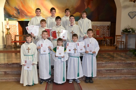 Ob koncu sv. maše so ministranti, ki so sprejeli nove službe, prejeli spominsko listino, najboljši v minulem letu pa zahvalno listino in knjigo msgr. Lojzeta Kozarja Premakljivi svečnik.