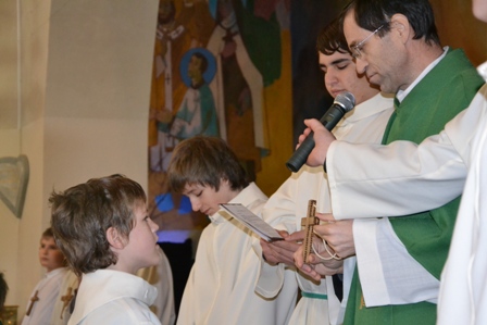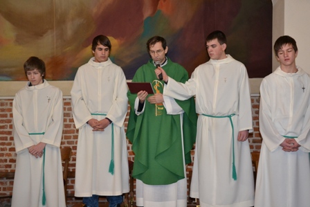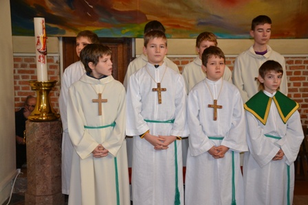 Pri bogoslužju poleg pevcev, bralcev in drugih sodelujejo tudi ministranti. Opravljajo različne naloge, zato imajo tudi različne službe in nazive. V nedeljo, 15. januarja, so posamezniki sprejeli različne službe. Matej Horvat je postal ministrant oglednik, kar je prva stopnja uvajanja v ministrantsko službo. Leon Antolin, Marko Čeh, Mitja Marič in Žan Aleksej Novak so sprejeli službo ministranta vajenca in v znamenje službe prejeli lesen križ. Blaž Marič je postal ministrant pomočnik in prejel velik lesen križ in lahko že v polnosti opravlja ministrantsko službo. Sašo Kavaš in Florijan Raduha sta postala ministranta mojstra in prejela manjši kovinski križ.