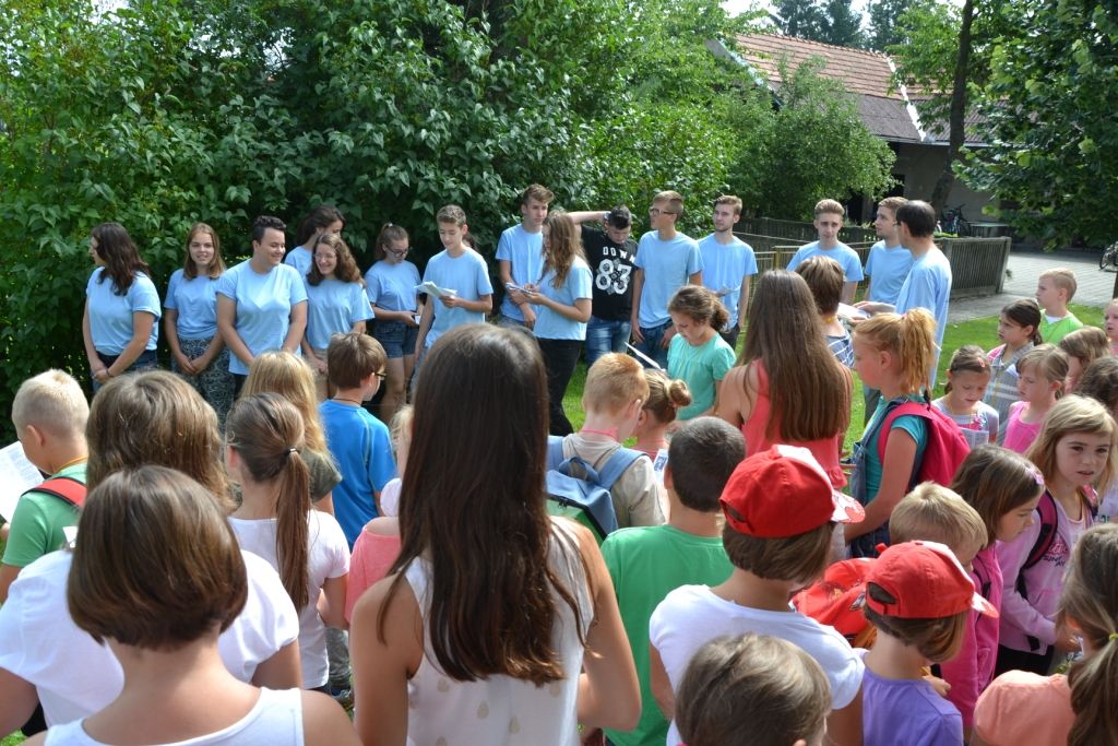Dvajset animatorjev je pričakalo nekaj čez osemdeset otrok, ki so prišli na 22. oratorij. Najprej so se naučili himno o sv. Dominiku, nato pa uradno z dvigom zastave začeli oratorij. Ogledali so si prvi del zgodbe o tem mladem svetniku. Zgodbo so že prejšnje dni odigrali in posneli animatorji ter pripravili filmsko uprizoritev Dominikovega otroštva. Njegov zgled nas vabi, da si tudi mi za prijatelja izberemo Jezusa in Marijo. Po molitvi se je dogajanje nadaljevalo po skupinah, kjer so izdelovali posebne kape in še na druge načine bogatili sebe in drug drugega. Po športnih igrah so spustili zastavo in odšli domov, da si naberejo moči za naslednji dan.