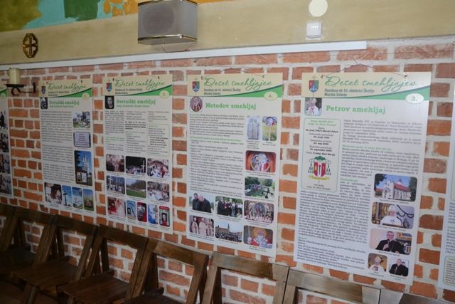 Razstava Deset smehljajev ob 10-letnici Škofije Murska Sobota, je iz Ljutomera pripotovala v Odrance, kjer bo na ogled do 24. oktobra. Prikazuje deset vrst dogodkov, povezanih z življenjem v Škofiji Murska Sobota, ki so na naše obraze priklicali smehljaj. Pri obeh sv. mašah smo na kratko preleteli vsebino panojev, za podrobnejši ogled pa bo priložnost v naslednjih dneh.