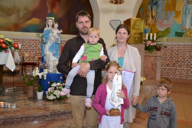 Ob 100-letnici Marijinega prikazanja v Fatimi je škof dr. Peter Štumpf v Črensovcih v soboto, 13. maja, blagoslovil kipe fatimske Matere Božje in jih izročil vsem župnikom v škofiji, da bi ti kipi potovali po družinah in vernike zbirali k molitvi. Tako je v nedeljo, 14. maja, ta kip začel svojo pot tudi v župniji Odranci. V pridigi smo razmišljali o fatimskih dogodkih pred sto leti, o Marijinem naročilo trem pastirčkom, naj molijo rožni venec in delajo pokoro, da bodo svetu izprosili mir. To naročilo velja tudi za nas, saj je mir tudi danes ogrožena vrednota. Zato smo vabljeni, da kip sprejmemo, ob njem molimo in tako utrjujemo svojo vero. Ob koncu sv. maše je župnik kip fatimske Matere Božje izročil družini Kociper, ki ga je ponesla na svoj dom. Vsak dan bo kip pri drugi družini. Tako nas bo Marija povezovala in krepila našo vero.