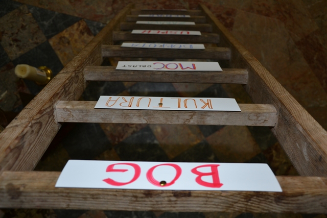 Tudi mi vsak dan plezamo po tej lestvi. Veliko je stvari, ki nas vlečejo dol. A blagor tistemu, ki ima v srcu hrepenenje po višjem, ki se trudi in se vzpenja. Blagor tistemu, ki postavi Boga na najvišje mesto v svojem življenju.