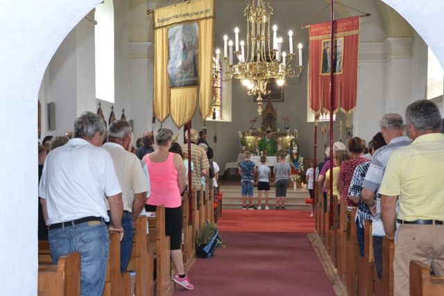 V župnijski cerkvi v Markovcih je bila sv. maša, ki jo je daroval odranski župnik Lojze Kozar. Sodelovali so pohodniki z branjem, prinašanjem darov in petjem. V pridigi je župnik spomnil na tri Kozarjeve besede: Oče, Cerkev in svetost. Božji služabnik je poudarjal, da je Bog naš Oče, zato smo mi bratje in sestre in moramo tako tudi živeti. Božji služabnik je gradil Cerkev in cerkve in ga nobena ovira ni zaustavila. Ob tem je spomnil na vez med župnijama Odranci in Markovci. Načrte za novo cerkev v Odrancih je leta 1946 v odsotnosti generalnega vikarja Ivana Jeriča, ki so ga komunisti zaprli, podpisal njegov namestnik župnik v Markovcih Karel Ficko. Božji služabnik nam s svojim prizadevanjem za cerkev govori, da je vredno vztrajati, saj Cerkev vodi Kristus. Tretja beseda ? svetost ? nas spomni na našo nalogo in naš cilj. To je tretja popotnica Božjega služabnika nam, današnjim popotnikom: Vsi smo poklicani k svetosti. Po pridigi so vsi navzoči zapeli še priložnostno pesem o treh Kozarjevih besedah. V znamenje hvaležnosti za Božje darove so otroci prinesli k oltarju križ iz borovih vej, Marijino podobo, knjigo Kamen in srce, podobico z molitvijo za beatifikacijo Božjega služabnika Alojzija Kozarja ter hostije in kelih. Srečanje v cerkvi se je končalo s pesmijo Prelepo ravno je polje, ki opeva veselje zaradi srečanja z Jezusom in Marijo pri sveti maši.